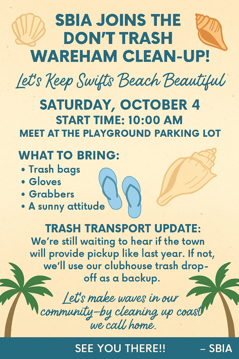 Thank you to all the amazing volunteers who helped keep our beach clean! Your time, energy, and dedication make a real difference in preserving the beauty and safety of our shoreline for everyone to enjoy. We’re grateful for your support and proud to have such a caring community. Let’s keep it going! - SBIA 2025